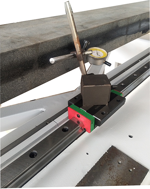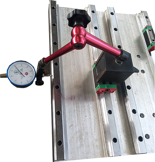 每根導(dǎo)軌安裝時(shí)均打表檢測導(dǎo)軌的平行度。
