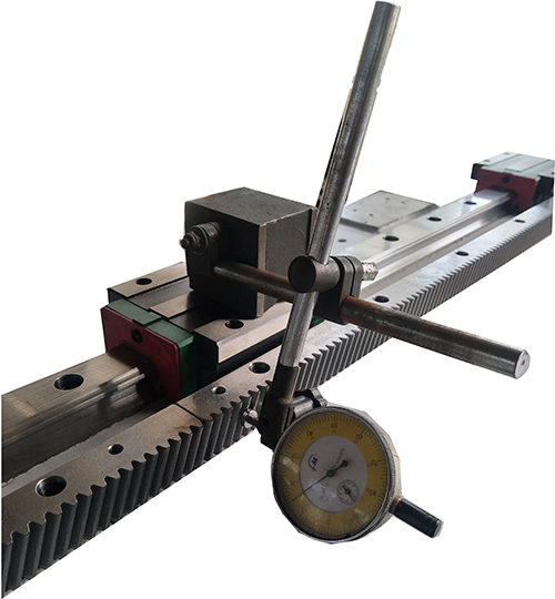 齒條安裝時,均采用千分表檢測齒條面與導軌的平行度,每臺機床做好詳細精度檢驗記錄